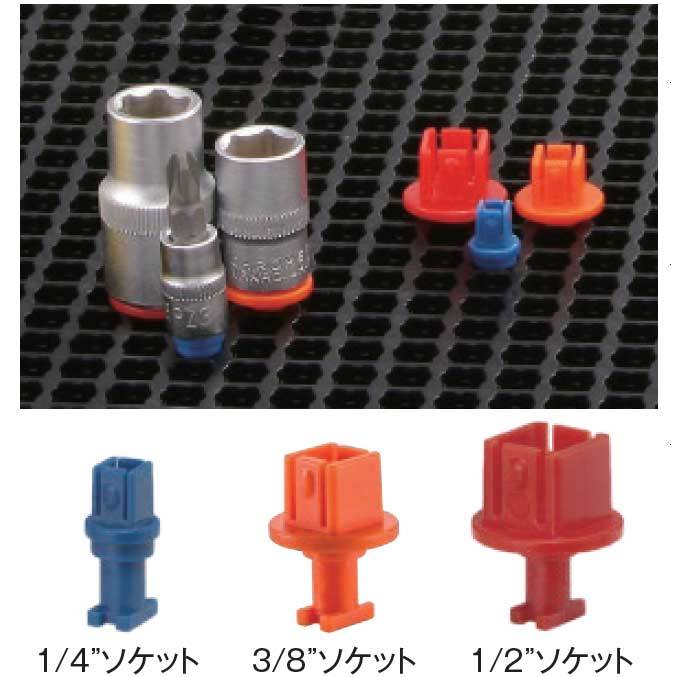 ソケットを指して収納するソケットフォルダーを1/4”・3/8”・1/2”の3種類を各15pcs付属しております。ソケットをペグボード上で整理することが可能です。