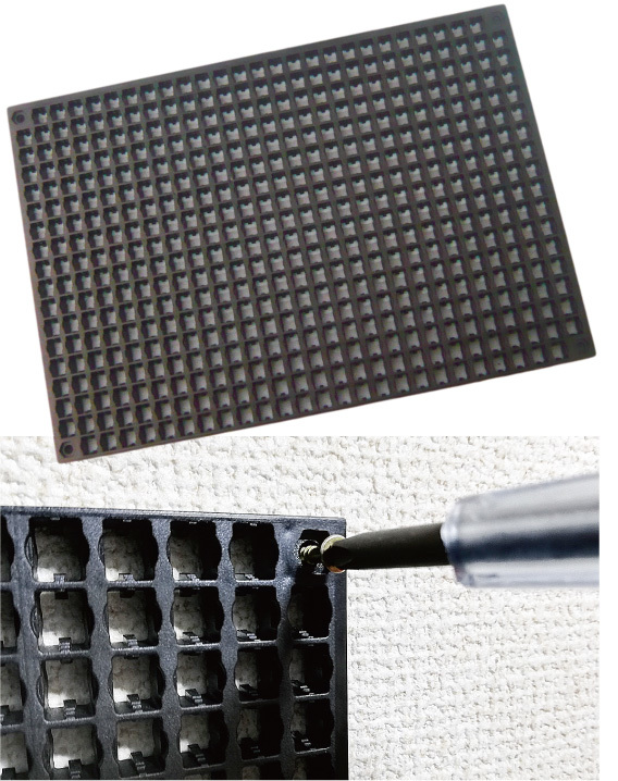 フリーゾーンの基本となるペグボードの黒色が4枚付属しております。ペグボードとは特許構造の格子状の穴が開いた専用のボードです。四隅のネジ穴を利用して付属のネジで固定します。またオプションの「マグネット固定金具」を使用して固定することも可能です。全てのオプションパーツを取り付ける基本となります。またオプションパーツを使用することなく1/4”ビットの工具部品を直接差し込み収納することが可能です。