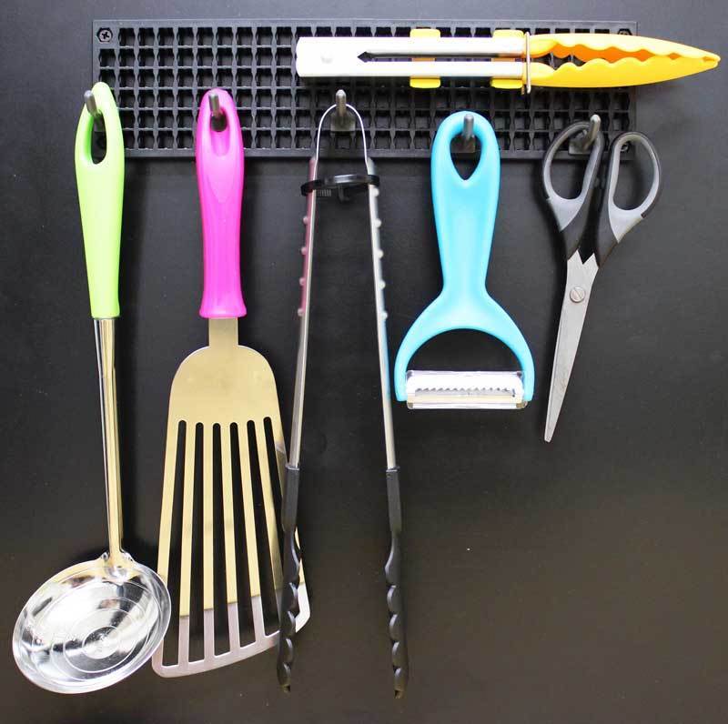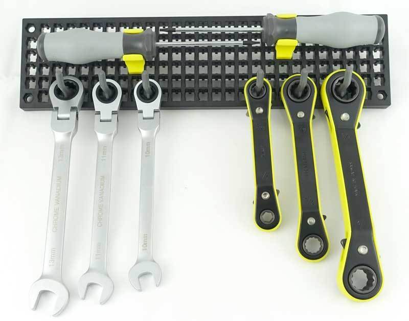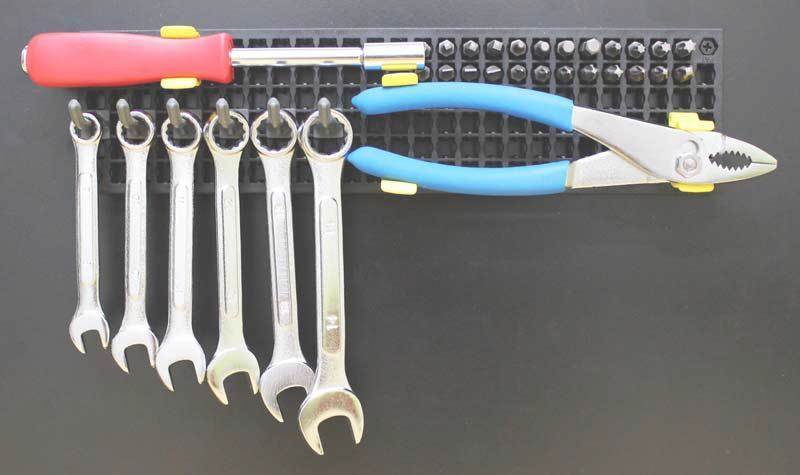 ペグボードの特徴として、ボードの穴に1/4”ビットの工具部品を直接差し込み、収納ベースとしてご使用頂けます。