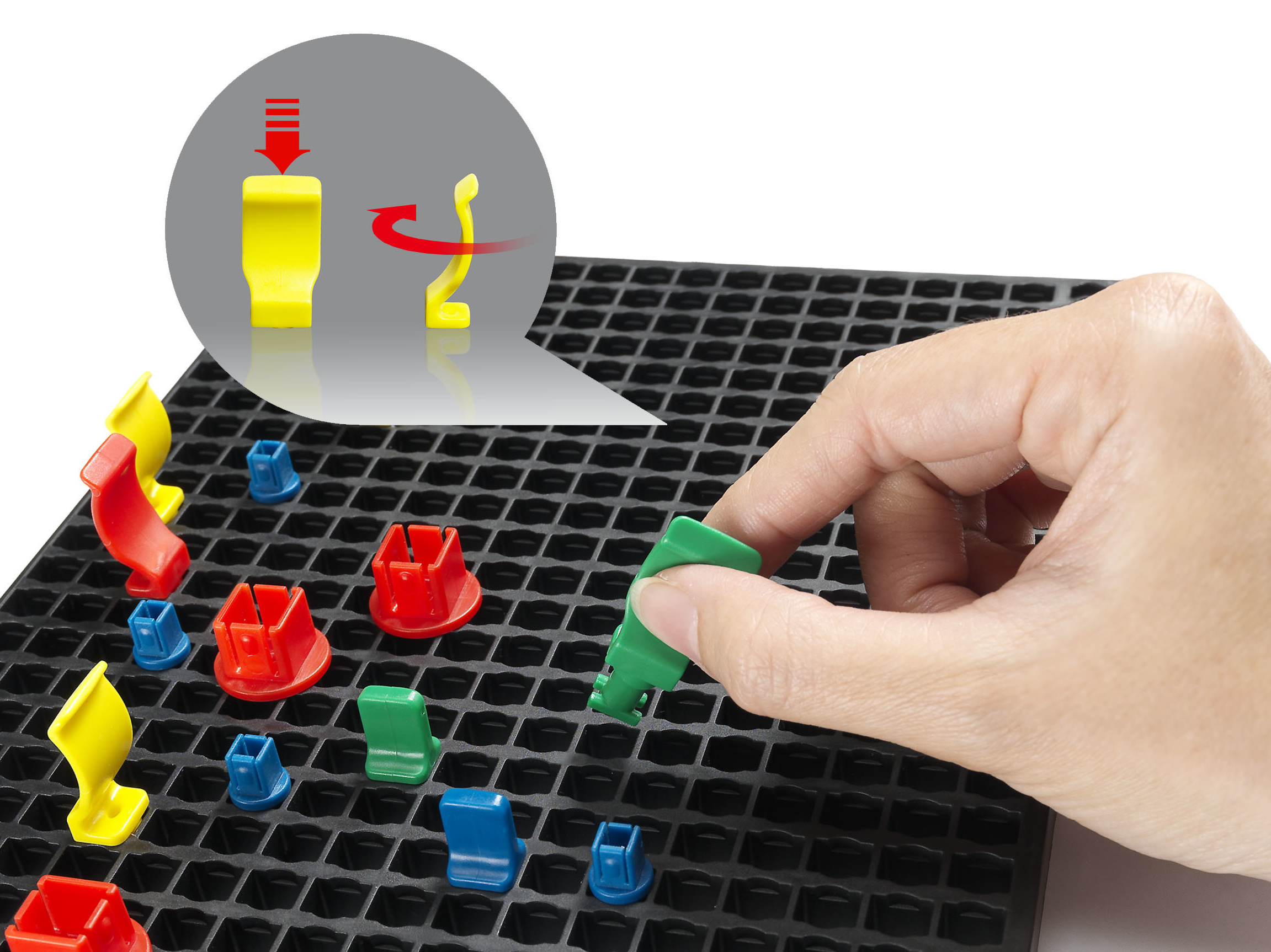 フリーゾーンのオプションパーツの中で用途が最も広いユニバーサルクリップを30個付属しております。ユニバーサルクリップとは優しくしっかりと挟むこができるクリップです。各クリップの方向を変えることで3通りの使い方ができ、アイデア次第で多彩に沢山の種類の物を挟み収納します。