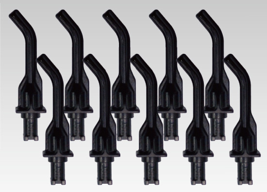 引っ掛けるだけの簡単収納を実現する、40mm長のプラスチック製フックを10個付属しております。対荷重は100gですので、比較的軽めの物を吊り下げて収納するのに便利です。重たい物はスチールフックに任せて、軽い物を収納してください。